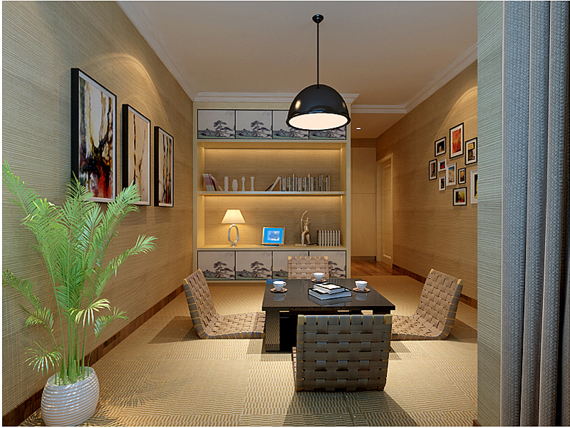 榻榻米为业主不尽提供了储物功能还提供了娱乐、品茶看书的功能,整体以暖色调为主,给人安静温暖的感觉,加上绿植的点缀,为整个空间增加生机与活力。