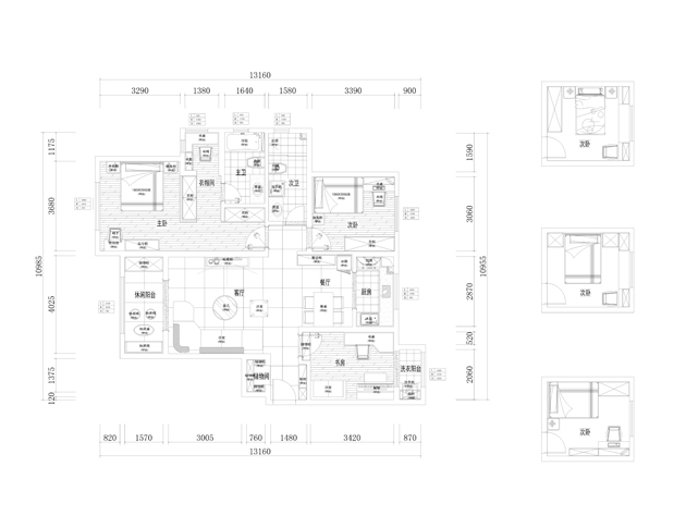 小区:金辉悦府 面积:159㎡ 户型:三居 风格:现代简约风格