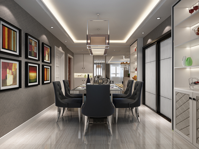 设计理念:此案例以现代简约为主要风格,整体极简的黑白灰,简单而中不失单调。客厅空间以暖灰为主色系,给时尚但不失稳重,电视背景墙运用条纹无纺布壁纸配以四公分石膏线,有规的背景墙分别是素色硬包饰面和木地板上墙作为装饰,非常规地板上墙,打破了传统观念,木纹的装饰使客厅更具有自然的痕迹,沙发两旁的镜面矮柜,时尚美观的造型,更加突出风格特点,深色的布艺沙发,浅灰的电视柜,一深一浅搭配交相呼应。吧台即增加空间功能,使得空间通透,酒柜装饰了墙面,吧台上摆放几盆绿植,在风水上也讲求入门见绿植。主卧暖灰的色调,最为舒适的色彩,水晶吊灯不失华丽,小百叶的衣柜造型简单美观。儿童房背景墙也采用条纹无纺布壁纸,整体呼应,淡淡的暖色温暖,如同家人对孩子的关怀。老人房实木的床,床头柜,梳妆柜,防实木的背景墙,有种返璞归真的自然之感,摆上绿植,稳重而活泼。厨房深色的布艺椅子,墙面的照片可以是旅游所拍摄的各地景观,美好的回忆。橱房门口的两个大的柜子,可以摆放装饰物件,厨房用品,空间显得干净整洁。