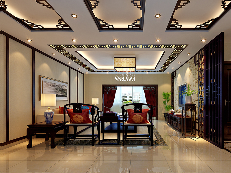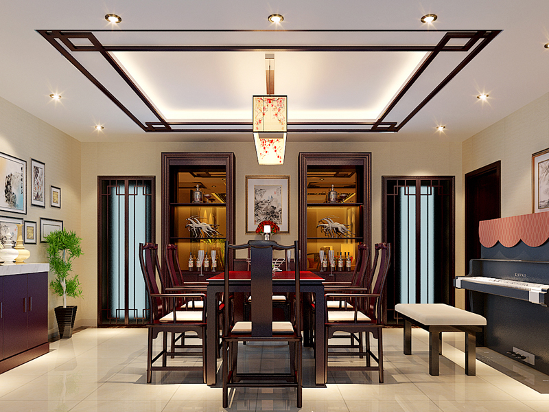 在整个的设计中既有中式元素的古色古香之家,又有简约时尚的大气沉稳。二者的完美结合为此设计增加了亮点,又能突出中式的古色古香的特点。