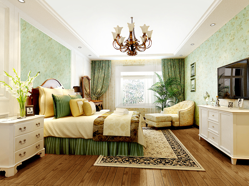 客厅是室内设计的主体部分,他的设计效果不仅影响室内整体的效果,也体现了主人的生活品味。本方案中客厅整体以浅色系为主色系,用深色的窗帘加以反衬,从而散发出一种温馨、甜美的气息。顶部设计并没有像传统欧式那样复杂、繁琐,只是用简单的直线造型顶加以装饰,并配以欧式的小角花,为了提升室内整体效果,电视背景墙与沙发背景墙则用了对称式的造型,虽简单却在点滴之间透露出欧式风格的气息。
