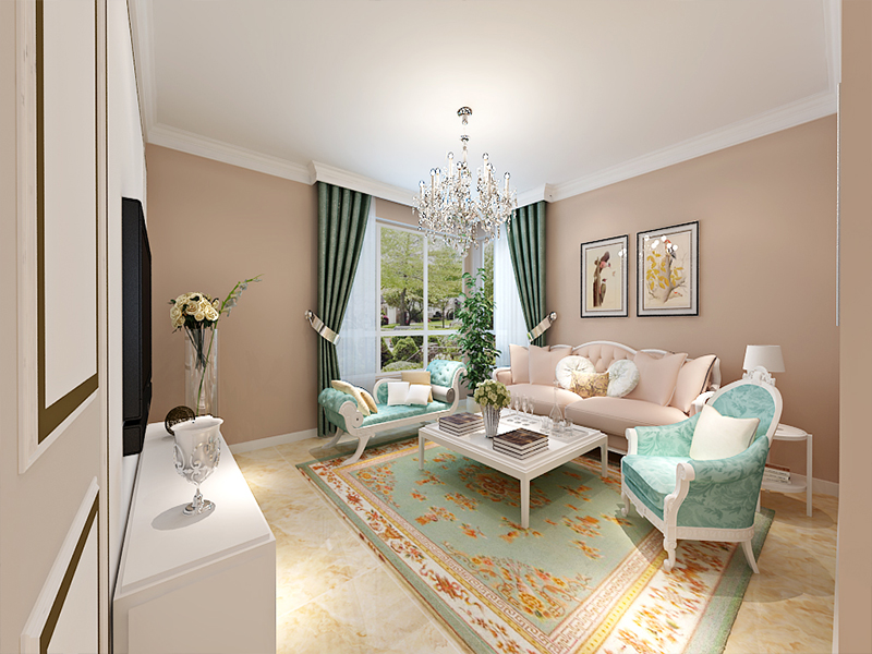 在居室空间的布局上为了突出轴线的对称,宏伟的气势;所以在家具细节处理上运用了法式雕花的方式,并把它运用在了沙发和地毯上,从整体看给人以舒适的环境。总体来说法式风格的居室空间设计优雅而又充满着浪漫的都市环境。