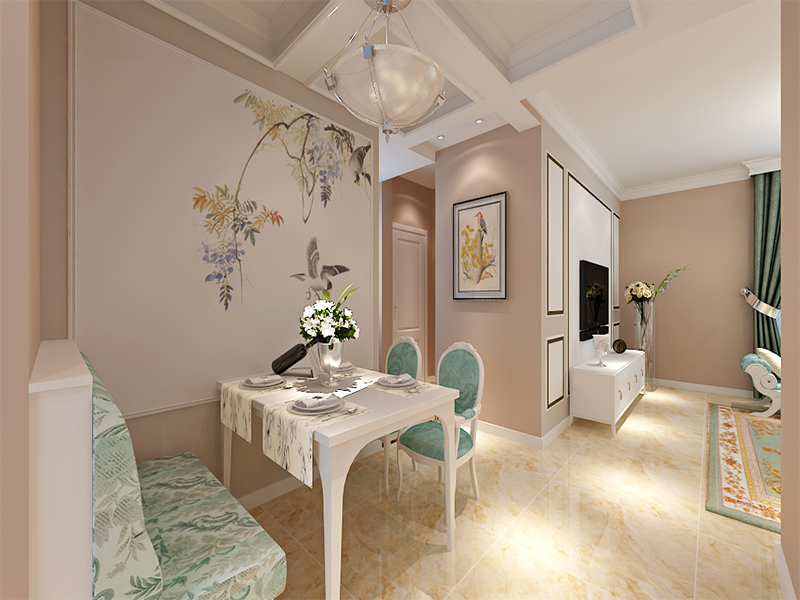 餐厅艺术不再只局限于实物那么简单了,精美的餐具、餐巾、餐垫、无一不为主人的家带来了一种视觉的享受,为客人带来美食的乐趣。餐厅的家具线条流畅,色彩协调,艺术气息感强,再加上造型优美的吊灯、方形的吊顶,整体优雅。