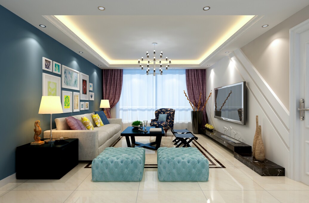 我们站客厅的另外一个角度去看客厅,客厅的颜色挺多,但是并不会给人一种凌乱的感觉。反而让整个空间更加富有活力。整个空间统一中不失丰富,稳重中点缀活力,很好的把业主的需求与爱好完美的结合起来,是设计师用心设计的一处亮丽的风景线。
