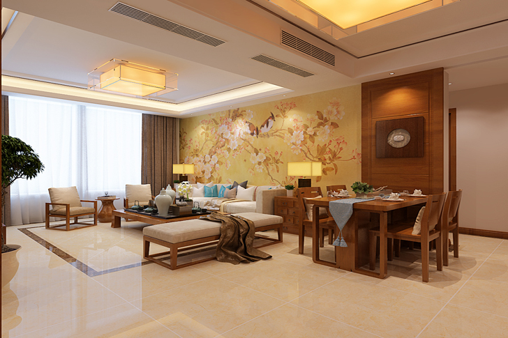 小区:中粮大道 面积:140㎡ 户型:三居 风格:新中式风格