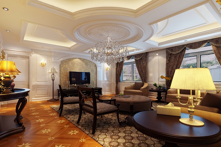 欧式风格的别墅在门的造型设计,包括房间的门和各种柜门,既要突出凹凸感,又要有优美的弧线,两种造型相映成趣,风情万种。 灯饰在欧式风格的家居空间里占很重重要的组成部分,灯饰设计应选择具有西方风情的造型,比如壁灯,在整体明快、简约、单纯的房屋空间里,传承着西方文化底蕴的壁灯静静泛着影影绰绰的灯光,朦胧、浪漫之感油然而生。在欧式风格的房间可采用反射式灯光照明客厅