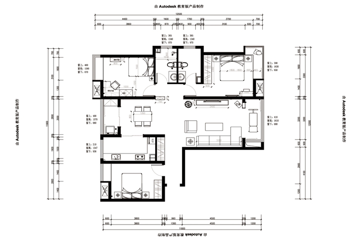 135㎡三居现代简约风格中建文化城