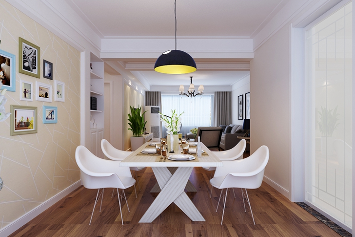 业主是一对年轻夫妻,此套房子是作为他们的婚房。由于是二次装修,客户想保留原来的门、橱柜和地板,风格要求简约、温馨。根据客户的需求,确定了简约的思路,结构上拆除了餐厅的一处非承重墙而改造成的酒柜,色调上以浅色系为主,客厅墙面浅浅的象牙白,以及地面的经典橡木地板,浅灰色的沙发和窗帘等营造出温馨的氛围,把原来的室内门和衣橱和谐的融入到了新房子里。