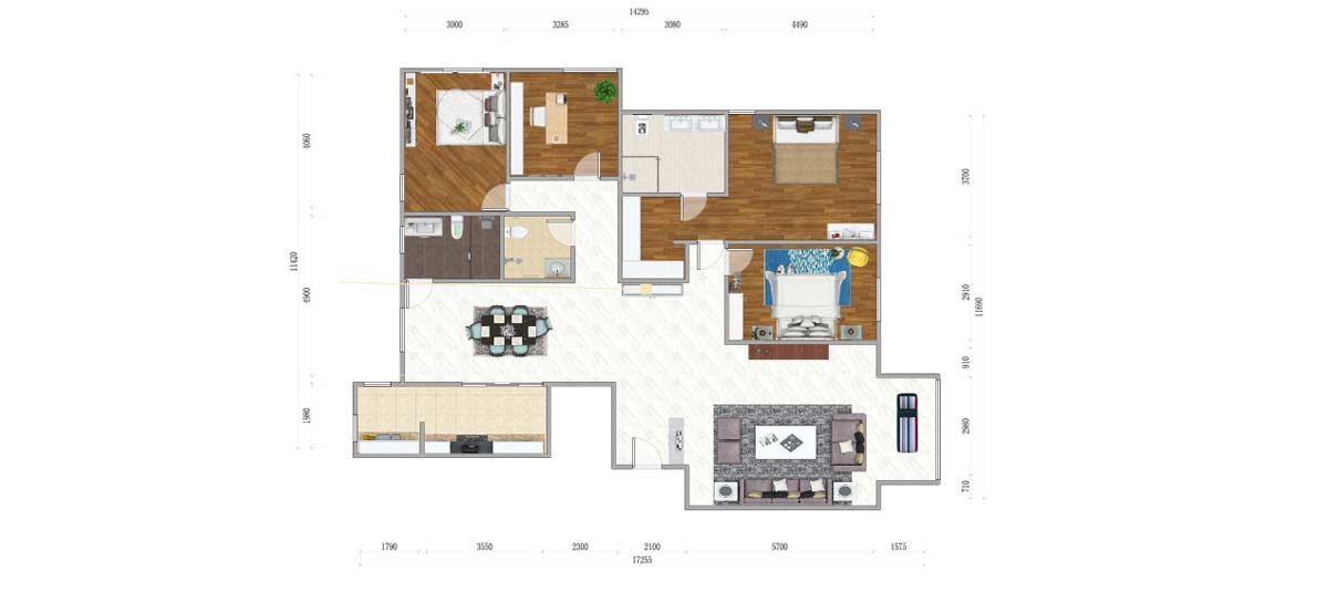 在功能的划分上以动区和静区规划两大功能空间 起居室公共空间在动线的设计上多考虑通透连贯多考虑到客户需求与生活方式 在静区的设计中 把主卧室作为重点 将衣帽间主卫全部规划到主卧室里,满足客户需求,更加的提高舒适性和生活品质。
