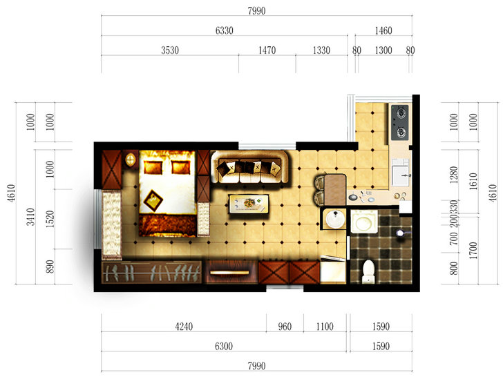 小区:长城国际 面积:35㎡ 户型:一居 风格:其他