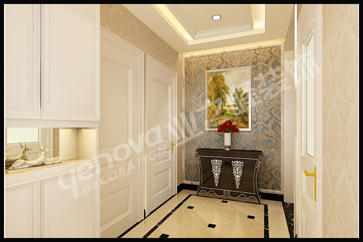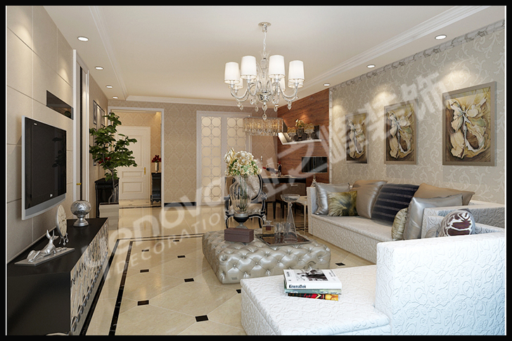 此方案的风格倾向定位为现代雅致风格。业主崇尚清新时尚的现代雅致风格.通过与业主的深入沟通,本着轻装修,重装饰的原则,同时围绕着业主对房子功能的要求,合理的对空间进行了改造与功能划分。本案的设计重点是会客空间与门厅、餐厅以及过道空间互通与交流,从设计手法上采用了从墙面上的线与面衔接呼应,以及顶面的空间的虚拟划分。壁纸、镜子与家具配饰的使用,使空间更加丰富与温馨。达到各功能空间融会贯通的目的