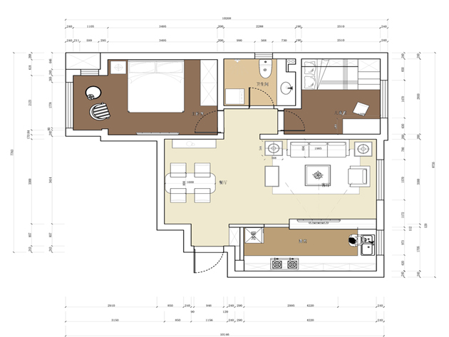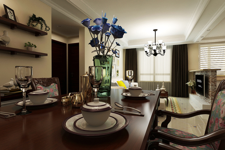 本案简美的设计追求的是空间的实用性和舒适性。居室空间是根据相互间的功能关系组合而成的,而且功能空间相互渗透,空间的利用率达到最高。空间组织不再是以房间组合为主,空间的划分也不再局限于硬质墙体,而是更注重会客、餐饮、学习、睡眠等功能空间的逻辑关系。通过家具、吊顶、地面材料、陈列品甚至光线的变化来表达不同功能空间的划分,而且这种划分又随着不同的时间段表现出灵活性、兼容性和流动性,如客厅和厨房通过吧台来区分既增加了实用性面积又使在视野上更舒适。