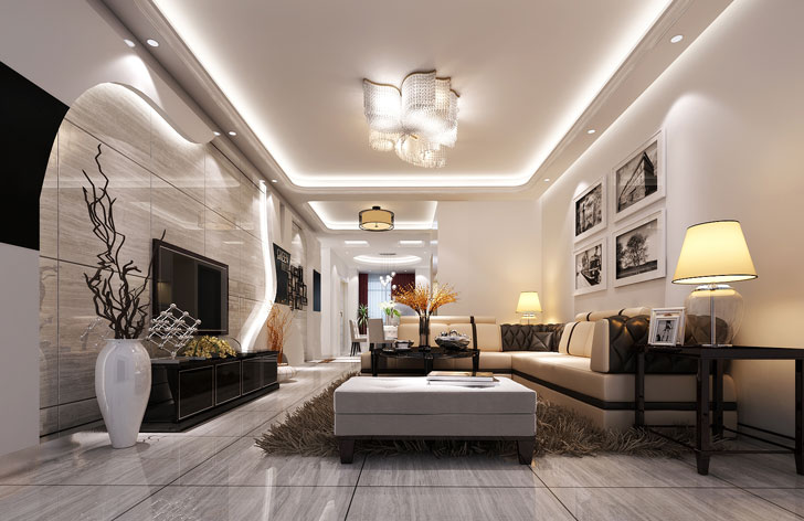 本设计为现代简约风格,色调采用对比鲜明的黑白为主要基调。该户型南北通透,但是背景墙、餐厅背景及入户门厅背景连成一条线,形成了较长、面积较大的整