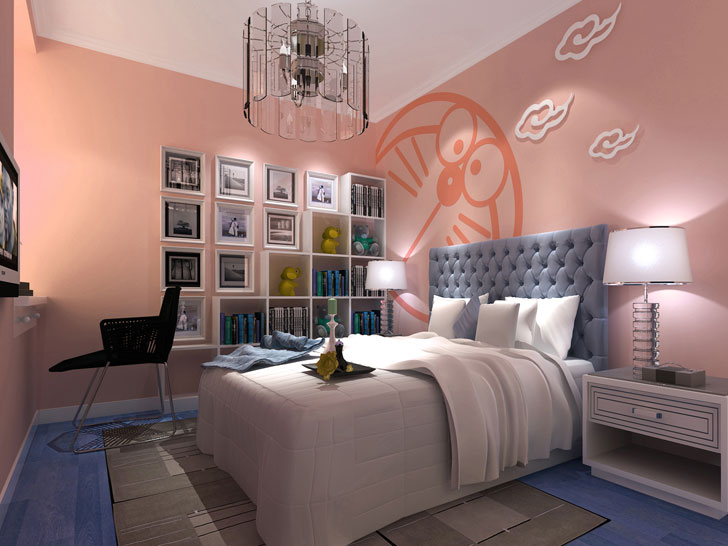 面背景,在空间上显得单调笨重。据此因素,该设计以业主姓氏“文”字作为设计元素,对背景墙做了整体规划设计,以“文”字的下半部分作为分割,使得三个背景