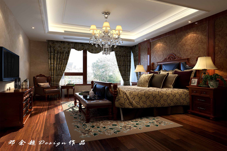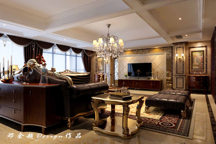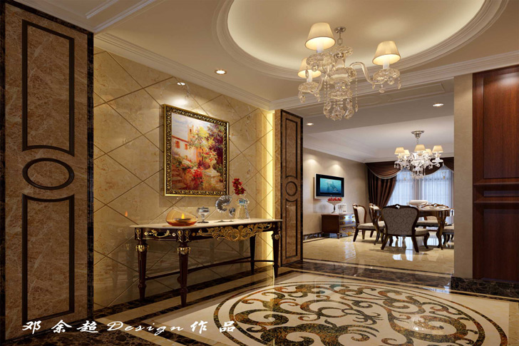 设计说明:本方案为满足客户要求,融入了美式的生活元素。此设计方案居室有的不只是豪华大气,更多的是惬意和美学。通过完美的典线,精益求精的细节处理,带给家人不尽的舒服触感,让家成为家人理想的港湾。