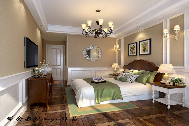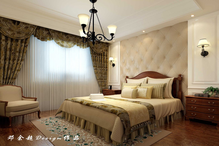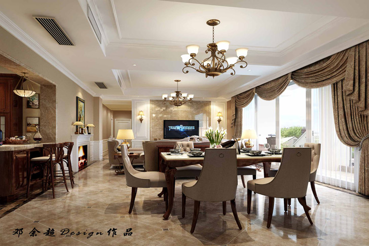 设计说明:本方案采用古典美式风格的主元素,融入了现代的生活元素。此设计方案居室有的不只是豪华大气,更多的是惬意和浪漫。通过完美的典线,精益求精的细节处理,带给家人不尽的舒服触感,实际上和谐是家的最高境界。