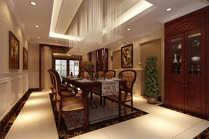 设计说明:览尽所有设计思想、所有设计风格,无外乎是对生活的一种态度而已。为业主设计适合现代人居住,功能性强并且风景优美的古典主义风格时,能否敏锐地把握客户需求实际上对设计师们提出了更高的要求。无论是家具还是配饰均以其优雅、唯美的姿态,平和而富有内涵的气韵,描绘出居室主人高雅、贵族之身份。常见的壁炉、水晶宫灯、罗马古柱亦是新古典风格的点睛之笔。
