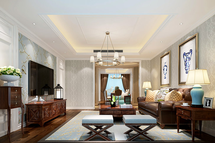 本案为现代经典美式风格,从紧张而纷繁的工作中归来,繁忙的都市生活,总会让人感觉到压抑。在这样的环境中,要保持良好的心情与心态就需要一个放松心灵的避风港,而家就是我们最好的心灵港湾。本案中舒适的设计,浅浅柔和的色调,清新的家具,让人感受到都市生活中的清新与放松。墙面造型与精美的吊灯相得益彰,素雅的沙发与餐椅,将这种氛围衬托得更加清新舒适。在繁忙的午后,一杯咖啡,一缕斜阳,一叶清风,一种浪漫皆伴我身。