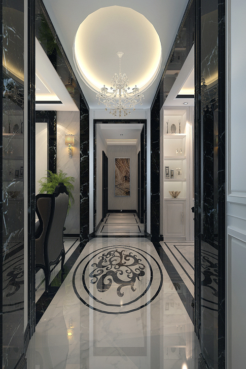 设计说明摘要: 此设计方案的风格倾向定位为后奢主义风格,以简洁的表现形式来满足人们对空间环境那种感性的和理性的需求,后奢风格非常讲究材料的质地和室内空间的通透哲学。一般室内墙地面及顶棚和家具陈设,乃至灯具器皿等均以简洁的造型、纯洁的质地、精细的工艺来作为其特征。该户型入户走廊狭窄,细长,设计师在中厅做了结构上的维和,利用维和空间中地面及顶面的造型从视觉上弱化了走廊狭长的问题,同时充分利用了室内空间,次卫生间划分了干湿区,使功能使用上更加便利,业主徐女士非常想拥有步入式衣帽间,在次卧书房空间做步入式衣帽间,其余空间定制榻榻米,最大化增强其空间功能性。本户型遵循业主要求,体现业主个性稳重的性格。客厅的电视墙与采用石材,整体给人感觉舒服而富有时尚感。此户型其他空间布局合理,南北通透,各功能区规划明确,是非常不错的优良户型,经过设计师的精心设计很好的划分了格局,使户型使用接近完美,形成了一种全新的的视觉感受。