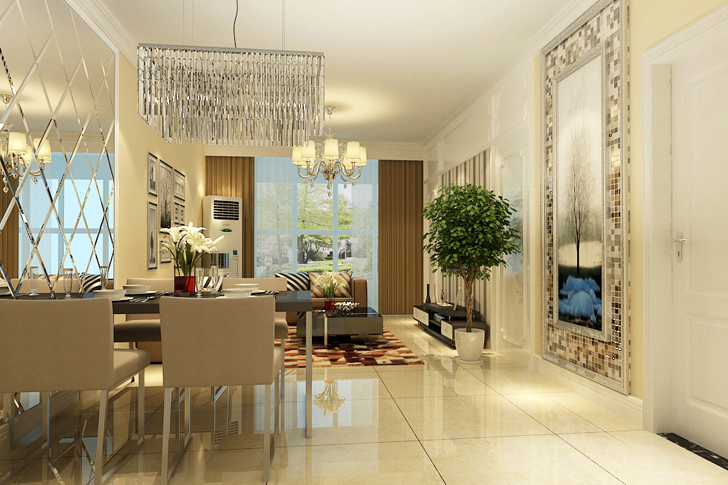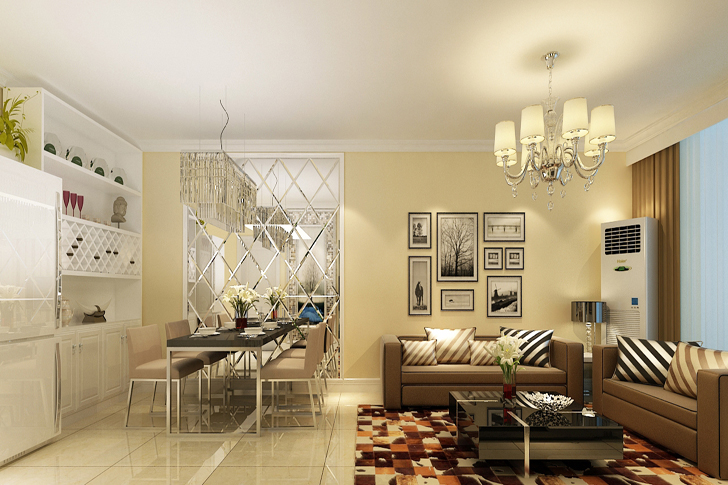 本设计方案定位现代简约风格,居室中简单整洁的造型和线条,彰显出简约大气的气质,简单、大方而不失高贵的气质,电视背景墙用了石材和壁纸相结合的方法,餐厅采用大面积镜面材质使空间更加宽敞,从设计手法上采用了先整体考虑后局部划分的设计手法。使各个空间得到了巧妙的衔接与统一。