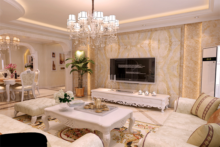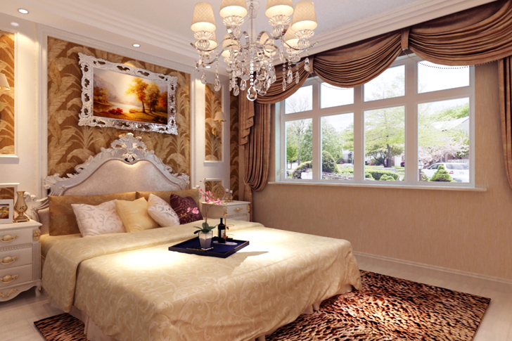 本方案为二室两厅的户型,风格定向为欧式风格 。本户型入户时一个小玄关为了让业主方便在旁边精心设计了一个小的衣帽间立面还有艺术的欧式造型装饰。客厅的电视墙两边用石材装饰尽显欧式风格中的大气与奢华,墙面有壁纸和地砖装饰软硬结合,给人以舒适的视觉感。餐厅的墙面用欧花的壁纸点缀,顶面一客厅的顶面一致交相呼应,南北通透的户型更是锦上添花。