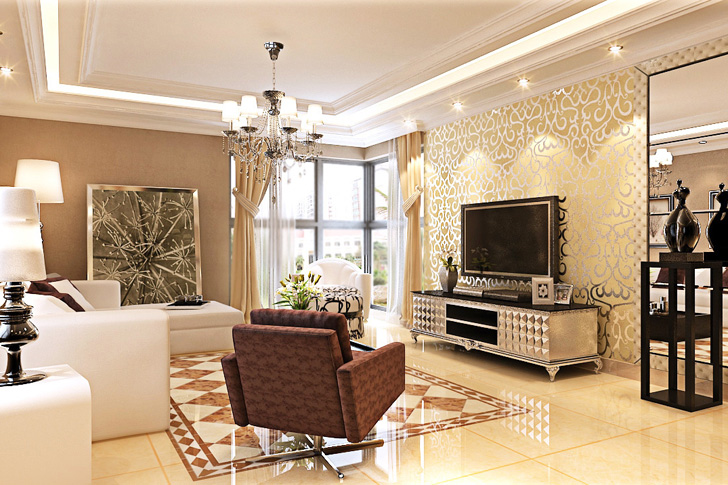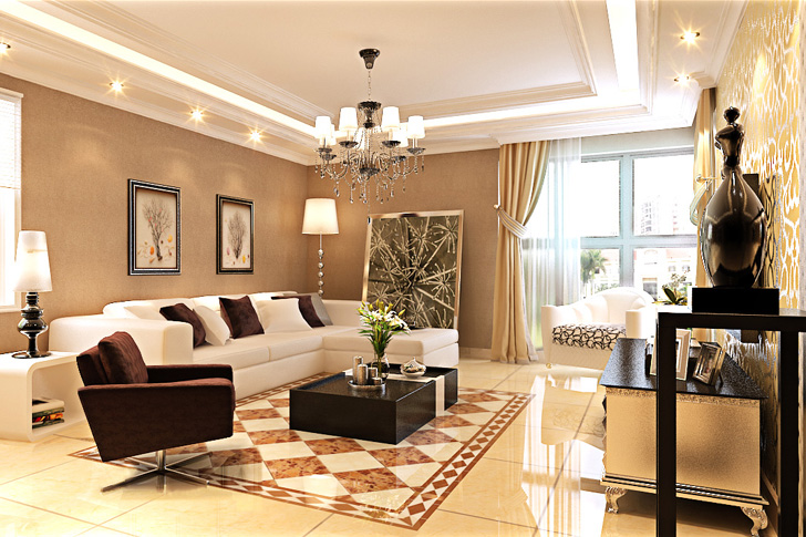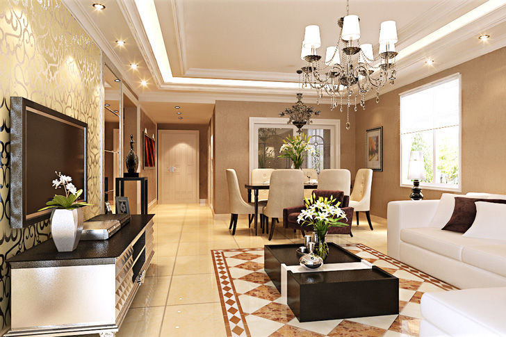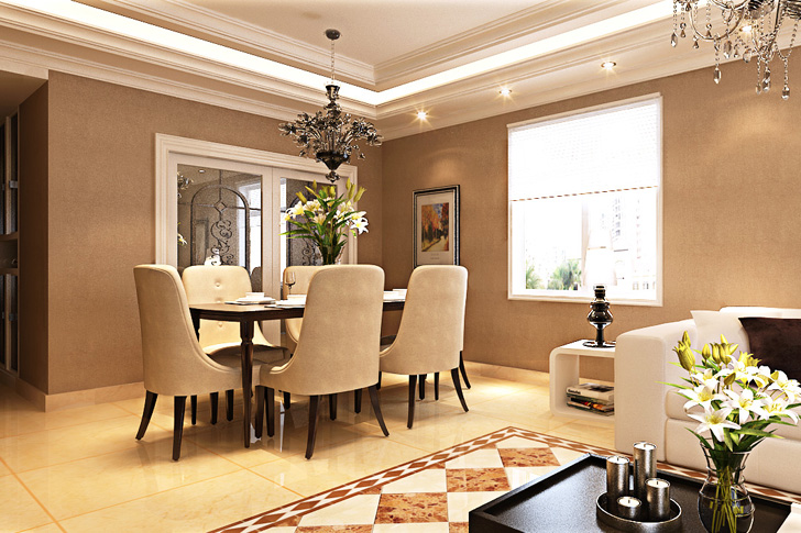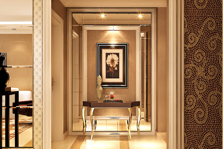 定位于简欧风格,力求营造出一种使空间尽情挥洒源远流长的神韵。在给予空间生命力的同时也饱含文化情趣。选材方面,欧式惯用的白色材质外,还用了咖色墙漆、镜面等现代材料,大大提升了原质感的对比效果,在表现尊贵的同时还增添了几分现代感,本案配搭了暖色的灯光,使得空间的层次感,穿透性大大提高。家具等也很讲究,既有西式元素,又具有强烈的时代感元素。例如天花水晶灯的闪烁效果,搭配上水晶灯、镜面、挂画、饰品等完美组合,形成极具品味的装饰效果,将奢华的欧式风情演绎的淋漓尽致。