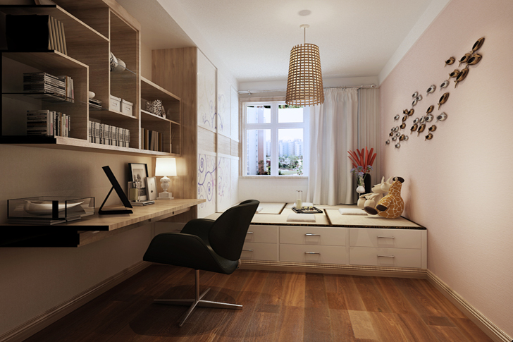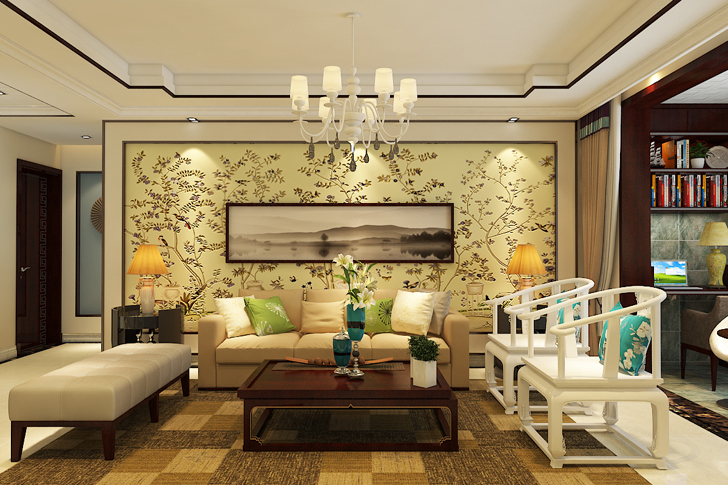 本案设计中木地板上墙,追求个性的室内空间形式和结构特点。色彩运用大胆豪放,追求强烈的反差效果,或浓重艳丽或黑白对比。强调塑造奇特的灯光效果。打破横平竖直的室内空间造型,客厅背景墙运用壁画,扩大了视野空间。该案例时尚新潮,非常适合年轻夫妻的居住。