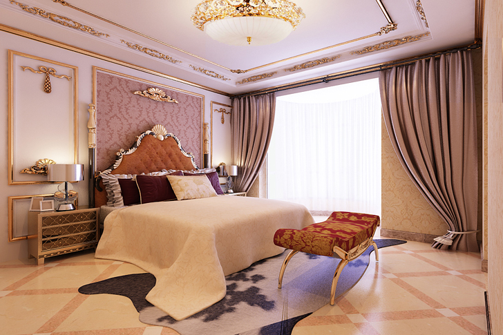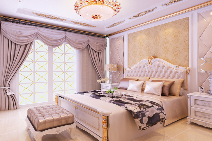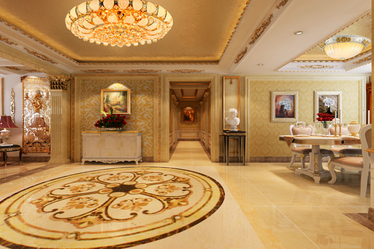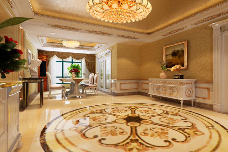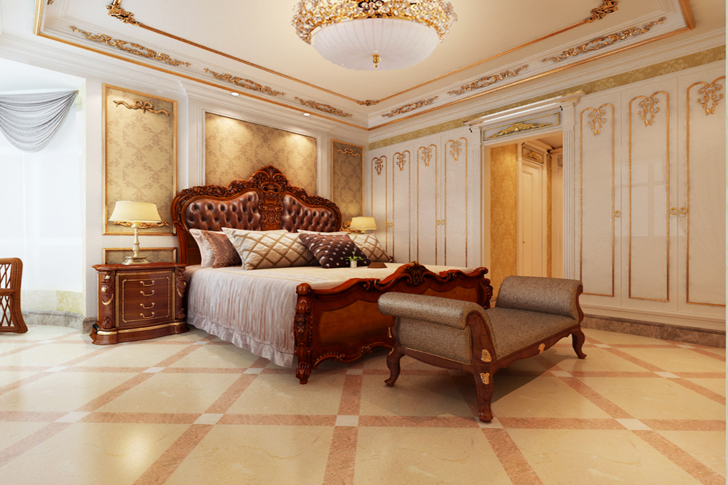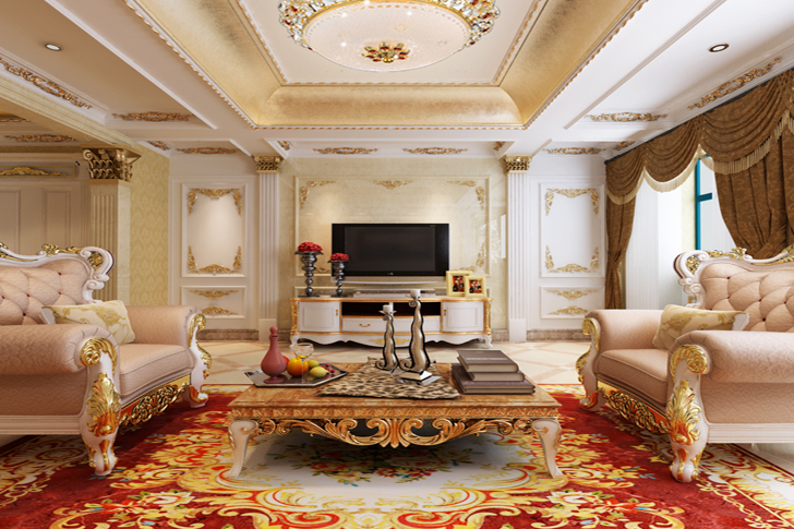 此案例最集中表现在阳刚气派的巴洛克与柔美古典的洛可可两种极具特色典型。家具与装饰,主要采用花样繁多的装饰,作大面积的雕刻、金箔贴面、描金涂漆处理,坐卧类家具大量应用面料包覆,华丽的布面与精致的雕刻互相配合。线条多为直线,很少弯曲的部分,强调简朴、古典与对称,家具结构方正,却有繁复的装饰图案,椅背普遍很高,两侧及顶端均呈直线,下横档常使用X型结构,铜雕、镀金、彩绘、珠宝及贝壳等镶嵌。使整个空间有浓郁的贵族宫廷色彩,精工细作,富含艺术气息。