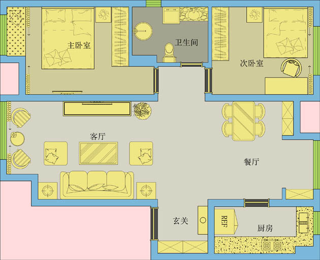 小区:玺岳 面积:110㎡ 户型:二居 风格:现代简约风格