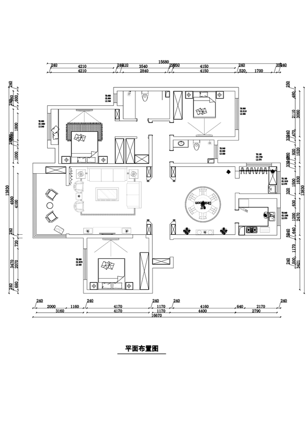小区:盛邦大都会 面积:184㎡ 户型:三居 风格:新中式风格