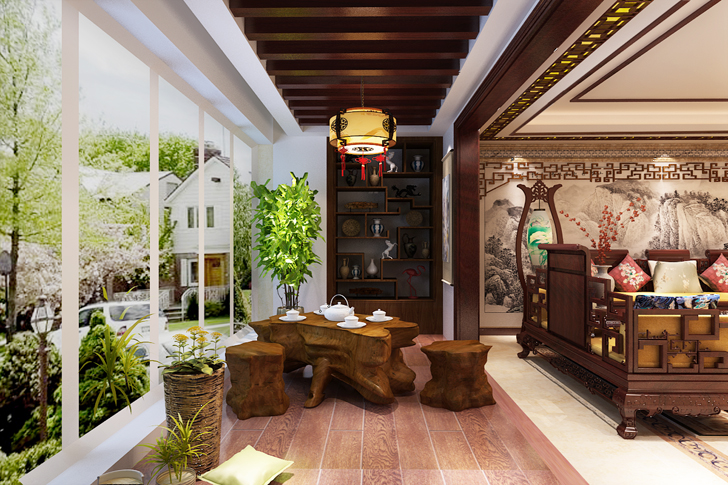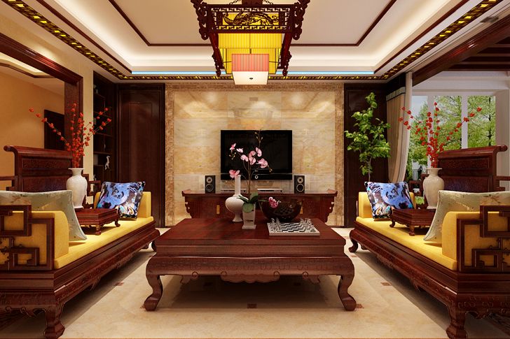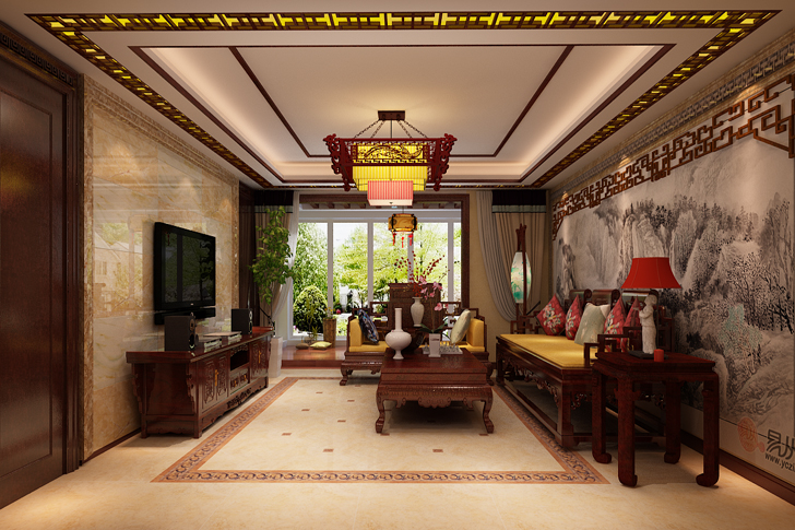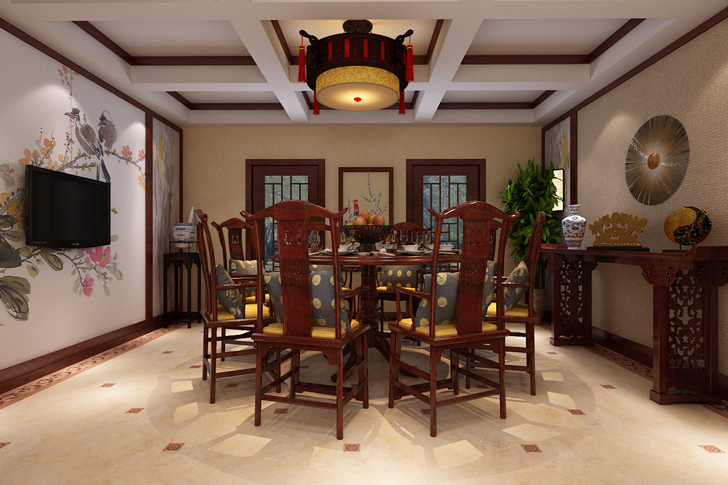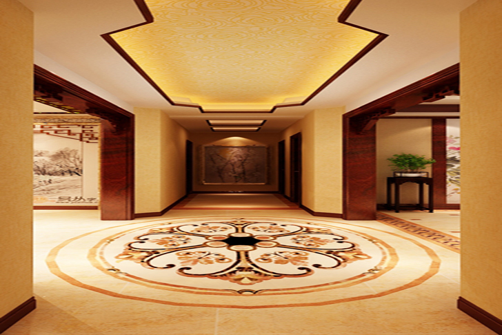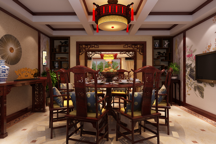 此设计方案采用中式风格,多采用木制花格,山水画与大理石上墙巧妙的结合,中式感十足,使整个空间大气有档次。格调高雅,造型朴素优美,色彩浓厚而成熟。造型多为中式花格、屏风、壁画等装饰品。追求一种修身养性的生活境界,充分体现出中国传统美学精神。