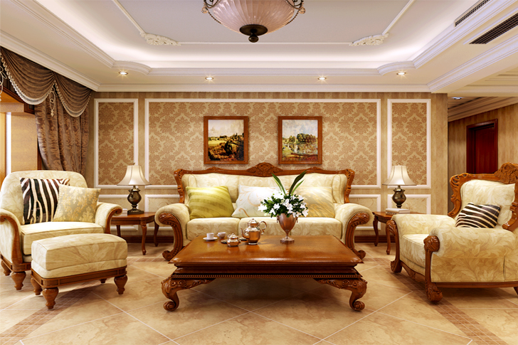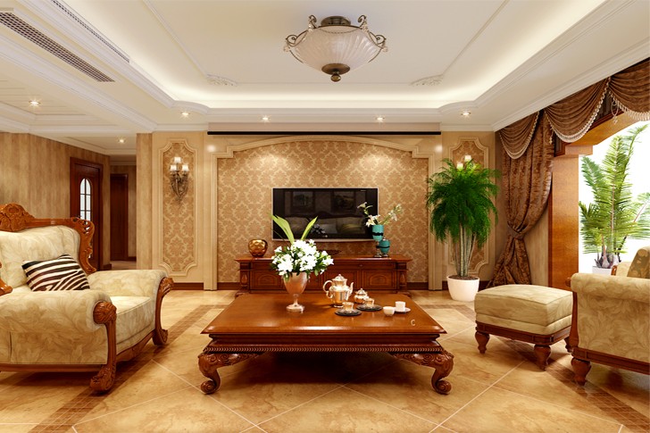 本方案定位于美式风格,空间进行巧妙的设计与分割,按休闲娱乐与待客等不同功能进行空间上的调整,即不相互影响又相互联系。同时整体空间巧妙地运用了大理石、护墙板等饰面,其中的点缀描金对整体空间起到了画龙睛的作用,既丰富了空间又增加了空间的实用性。整个空间的吊顶新颖时尚,运用了充满现代色彩的镜面,客厅背景墙用石材、镜面软包相互融合,使美式的特点在空间尽情展现。主卧奢华舒适的床品与地面地毯照相呼应,总览整个布局,无一不体现艺术与时尚的结合。