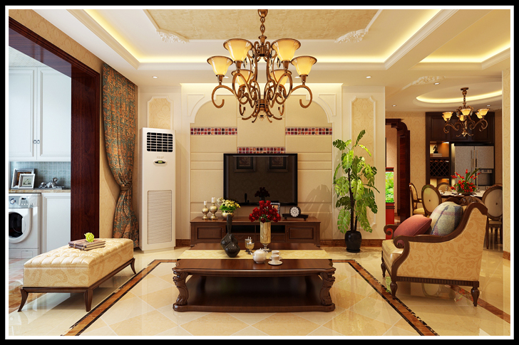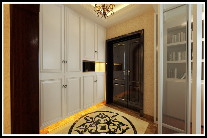 此设计方案定位为简欧风格,居室中以局部造型和大面积壁纸相结合,彰显出高贵典雅的气质,本案的设计重点是入户门拼花应用以及餐厅造型的设计及冰箱嵌入使餐厅整体空间舒适。卫生间墙排坐便的设计使整体空间整洁,简单,大方而不失高贵的气质。电视背景墙用了软包的饰面,使整个空间显得更高雅。从设计手法上采用了先整体考虑后局部划分的设计手法。使各个空间得到了巧妙的衔接与统一。