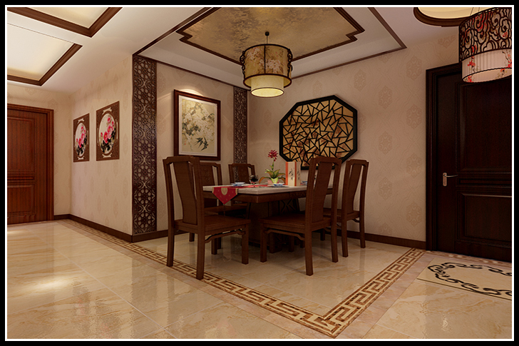 通过对传统文化的认识,将现代元素和传统结合在一起,以现代人的审美需求来打造富有传统韵味的事物,让传统艺术达到合适的体现。整个住宅的布局严整、敞亮,使人有雅静舒适之感。入户门庭运用天圆地方的传统理念将地面与顶面相呼应,四平八稳的地拼中“祥云”的点缀,把“吉祥、如意”的寓意,表达的淋漓尽致!
