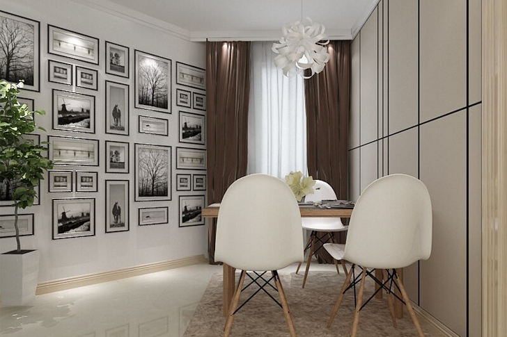 在色彩上:房屋的整体颜色采用了暖白的色系,使整体空间看来更加宽敞明亮。通过每个空间里的软装设计,通过深色系恰当的点缀,将空间单调的色彩打破,使空间整体色彩更加的饱满。