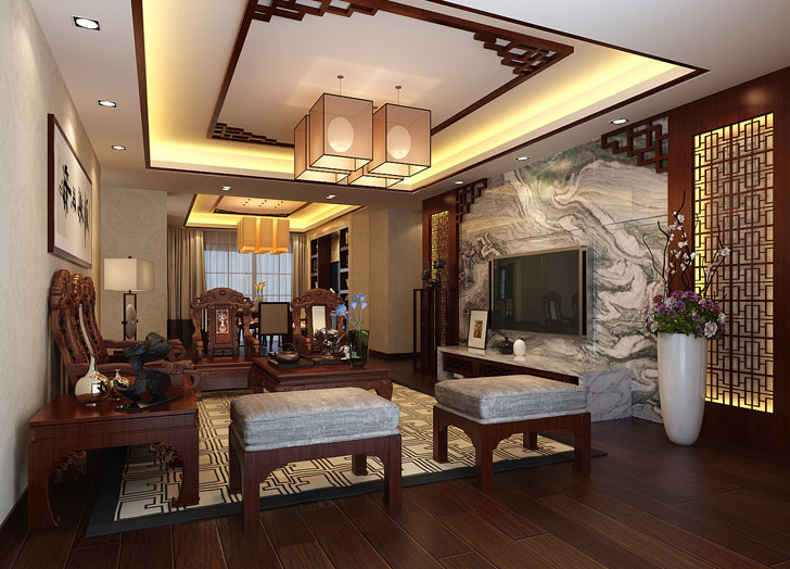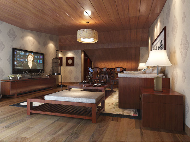 此案例业主是一个夫妇带个小孩,小孩马上初中,业主想把空间做为中式,户型为顶楼的一个户型。层高为5米3.格局上可做现浇做两层来处理。业主 父母偶尔来南昌居住,所以楼下三房都需保留,楼上空间至做一个书房兼客房功能,做一个会客区,其余做储藏功能。采暖业主采用小松鼠地暖,空调采用格里中央空调。