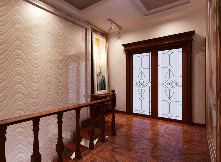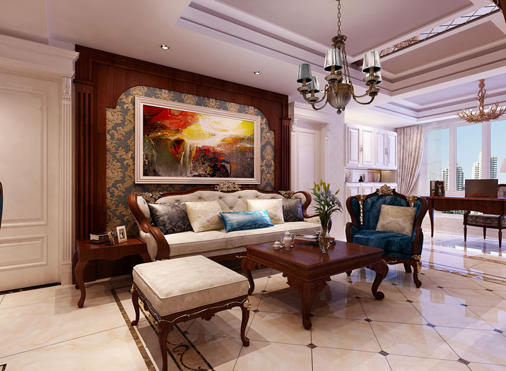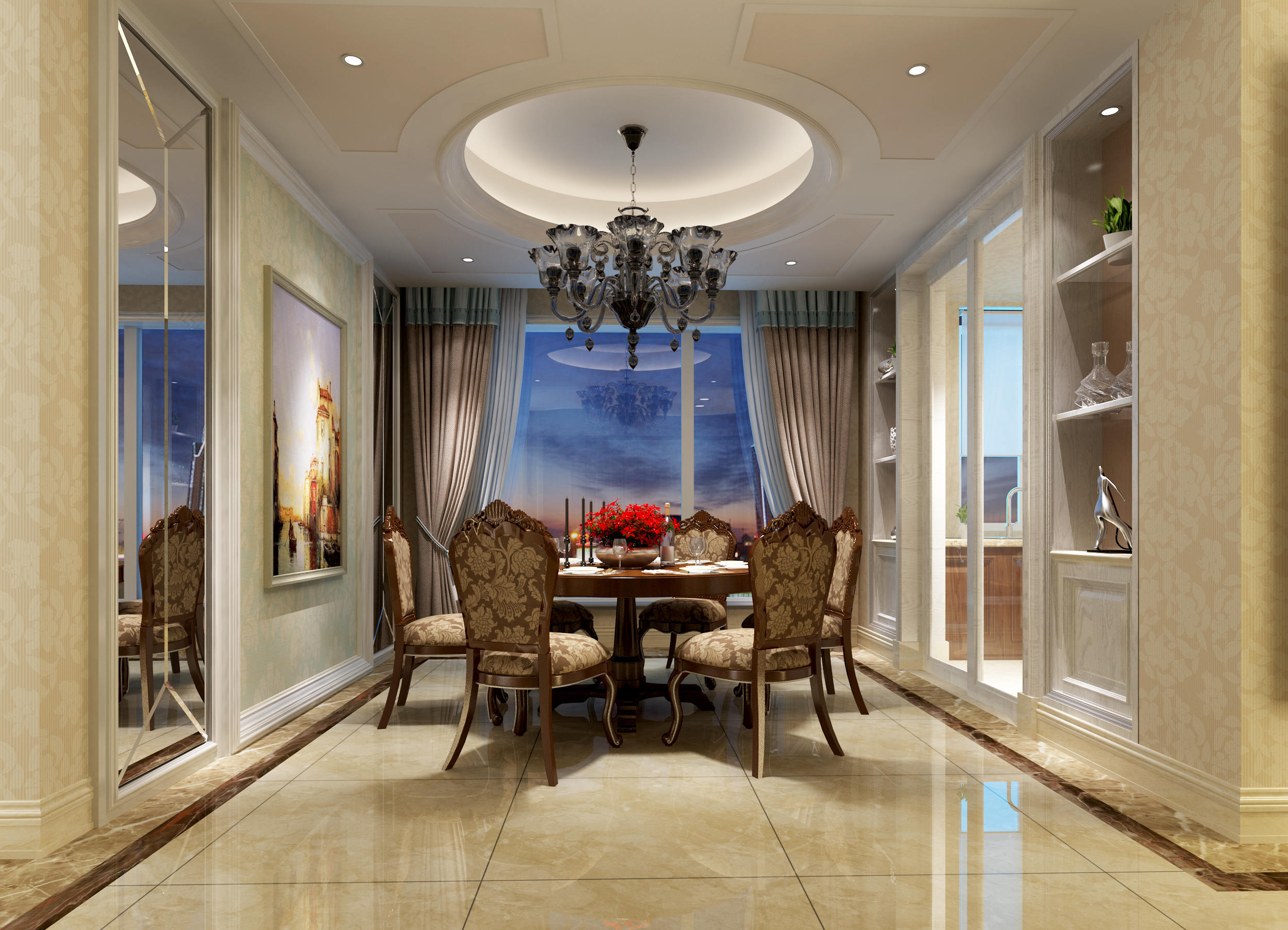 【设计说明】此设计方案的风格定位为美式风格,在方案中主要体现了华丽、高雅的古典风格,居室色彩主调为棕色,浅色为辅。家具为古典弯腿式,擅用各种花饰,丰富的木线变化,以及西式传统室内装饰的固定模式,空间环境多表现出来的华美、富丽、浪漫的气氛。用简单的直线条、大理石材和特殊材质的色块充分呈现出富有历史气息的美式风格。