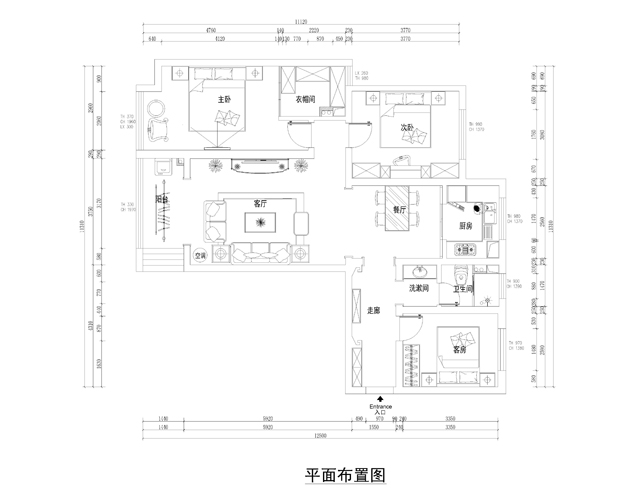 本案的设计风格为简欧风格,它没有欧式奢华华丽的表象,却有着欧式的优雅高贵,纯粹的色彩、纯粹的感受,总是那么不经意间爱上他的黑白分明、 时尚、深邃、留白、雅致、太多太多的词汇去形容她。在色调的选择上,整体为亮色调,黑白灰的合理搭配,使空间显得非常舒适,四季皆宜的黑白灰装饰褪去了缤纷色彩,将简约与欧式化身为一种低调的奢华,平静不失深刻,在空间布局上遵循以人为本的设计理念,创造新空间,在室内设计原理中,整体黑白灰使用冷色调,采用局部跳跃色点缀,确实可以丰富空间感。在本案例中,设计师正是把这种设计思路发挥到了极致:灰色为主的空间色调,夹杂以跳跃的蓝色和深沉的黑色,简欧的设计语言,让所有人的眼前为之一亮,同时设计师还在空间上做了文章,整个空间的吊顶新颖时尚,且充分结合客户意思将具有中方特点的北斗七星运用与此,完美的将聚财之意溶于设计,餐厅的斜面垭口设计突破以往的中规中矩,客厅沙发背景墙的应用和墙面石材的铺贴在材质上得到了对比。主卧电视背景墙的设计不仅丰富了整个空间更增加了储物功能。总揽整个空间,无一不体现艺术与时尚的结合。