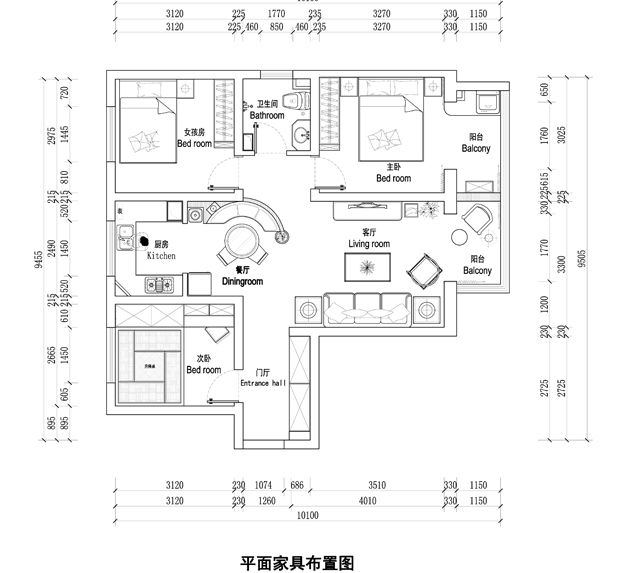 小区:众美凤凰城 面积:125㎡ 户型:三居 风格:混搭风格