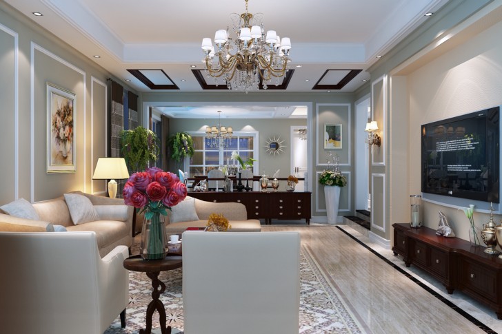 该方案是属于一家三口之家,总面积约360平。设计风格为美式。根据客户要求,整体色调搭配为浅色调。多处采用直线条,不加过多的修饰预约书,整体感觉散发着休闲式的浪漫。同时采用多种元素是整体感具备一定历史感和文化更根基。主要交流区域客厅,才用浅色系的沙发,木质茶几,搭配一株绿色植物,传递着简洁,舒适的气息,在淡黄色灯光映衬下,呈现出雅致浪漫的韵味。整体风格相对简洁,多种美式元素,自然朴实的氛围都凸显了家居生活的品质感,家具为弯腿式,部分家具,门为白色,空间环境讲究华美,富丽与浪漫。同时在软装和用色上非常统一,大气时尚。