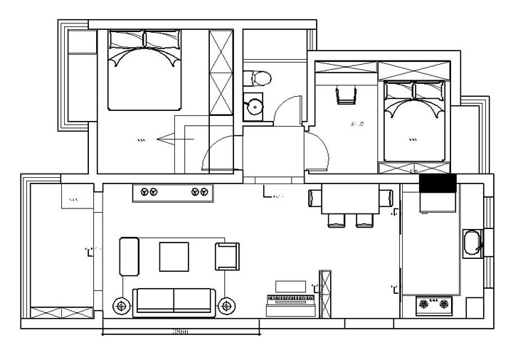 小区:绿湖豪城 面积:85㎡ 户型:二居 风格:新中式风格