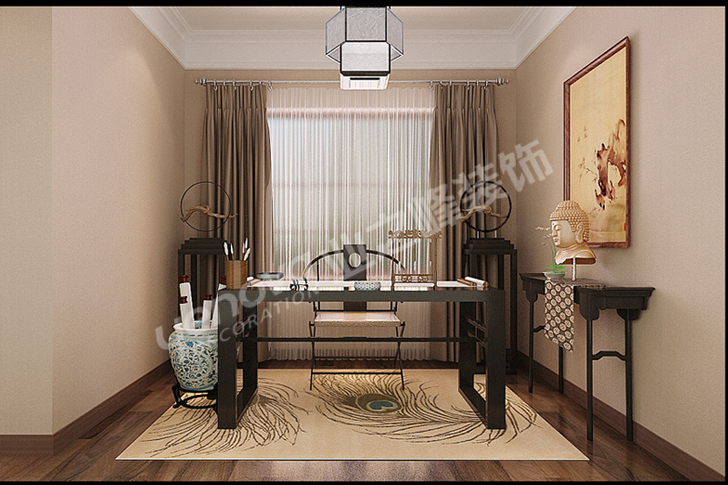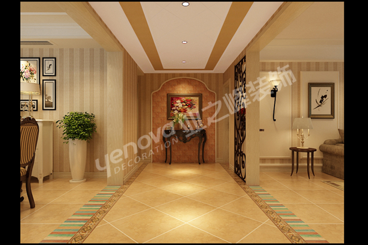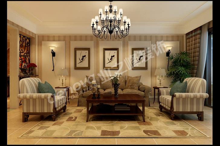 设计说明:此客户文艺夫妻,男主人为体育老师,女主人从商。对家庭的要求使用与舒适性要求特别高,书房的文化气息要求元素浓但是不复杂。此户型特点入户门过道太窄,本案采用了拆除墙体方式增宽门厅过道的感觉把空间分割。餐厅与厨房连贯性不好,运用可拆除墙体把餐厅厨房连体性。客厅由于入口太窄导致原本很大的空间分成了两半,后来设计复查尺寸进行大改动,把客厅与中廊融为一体。美式风情是介于舒适与现代感及家具柔感的一种结合体,主要体现为木质品的结合与流线型的造型元素完美结合塑造,突出点为对生活的高度追求舒适向往!