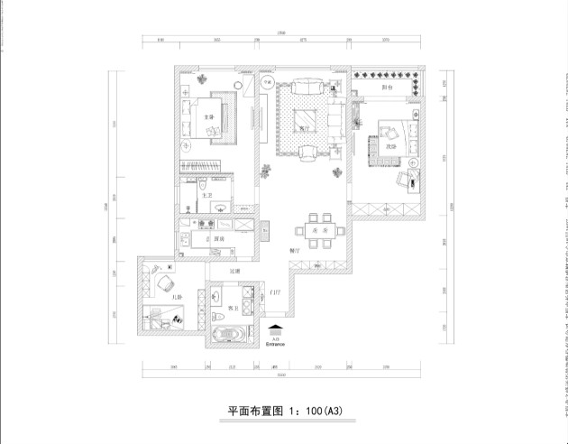 140㎡三居新古典风格景怡花园
