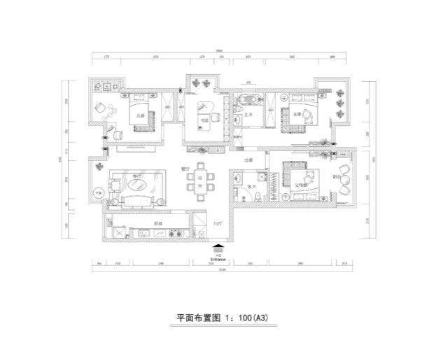 152㎡三居美式风格智诚平阳府第