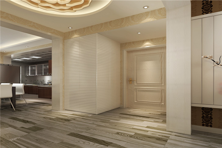 门厅区域一组很有美式乡村风格风情的鞋帽柜,可以收纳业主日常穿着的衣物及外露的管线,实用性和观赏性兼具。除此之外,设计师在细节的处理上也很到位,例如过道的弧形垭口及通顶的垭口门套的设计,都在传达出现代美式风格的粗狂大气和细腻柔和之感。