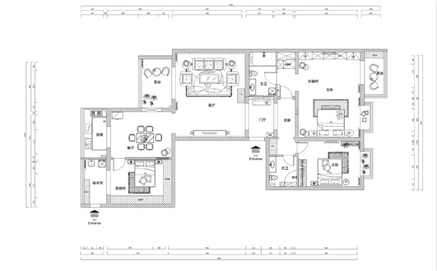 本案设计为一套新古典主义风格的设计。新古典主义风格强调了室内空间表现手法,从简单到繁杂、从整体到局部, 精雕细琢,镶花刻金都给人一丝不苟的印象。它一方面保留了材质、色彩的大致风格,让人感受到传统的历史痕迹与浑 厚的文化底蕴,同时又摒弃了过于复杂的肌理和装饰,简化了线条。 本案设计就着重根据新古典主义风格的元素符号,舍去那些复杂的造型,将怀古的浪漫情怀与主人对生活的需求 相结合,兼容华贵典雅与时尚御景现代,反映出后工业时代个性化的美学观点和文化品 。
