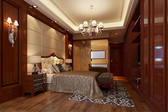 此房为儿子孝顺父母安享惬意房。父母较为传统,儿子节假日会来一起居住,希望不要装得太沉闷。综合两者意见,我采用沉稳的深棕色为基装主色调,部分墙面采用雅致色调的墙纸及艺术涂料跳脱沉闷感。