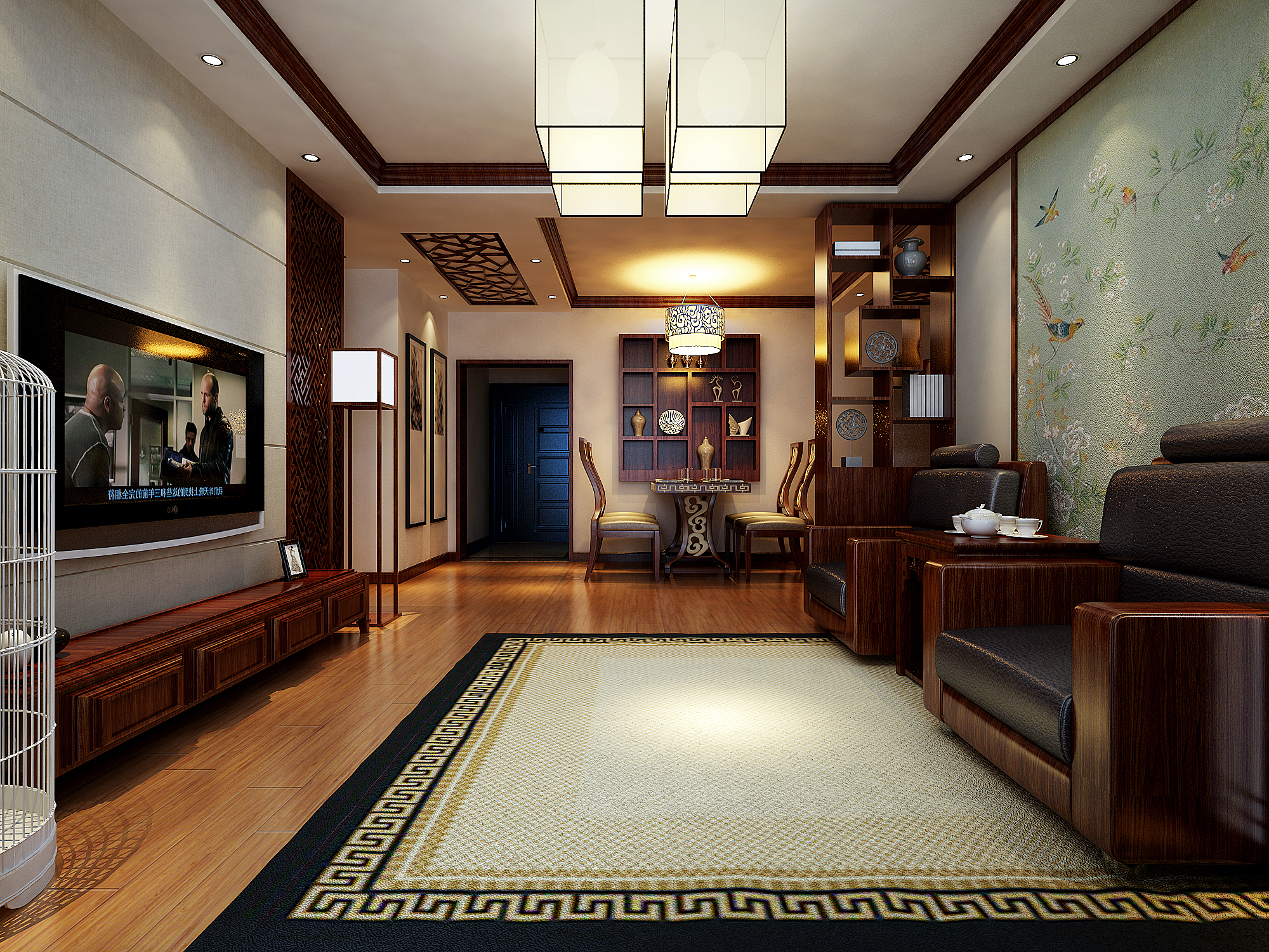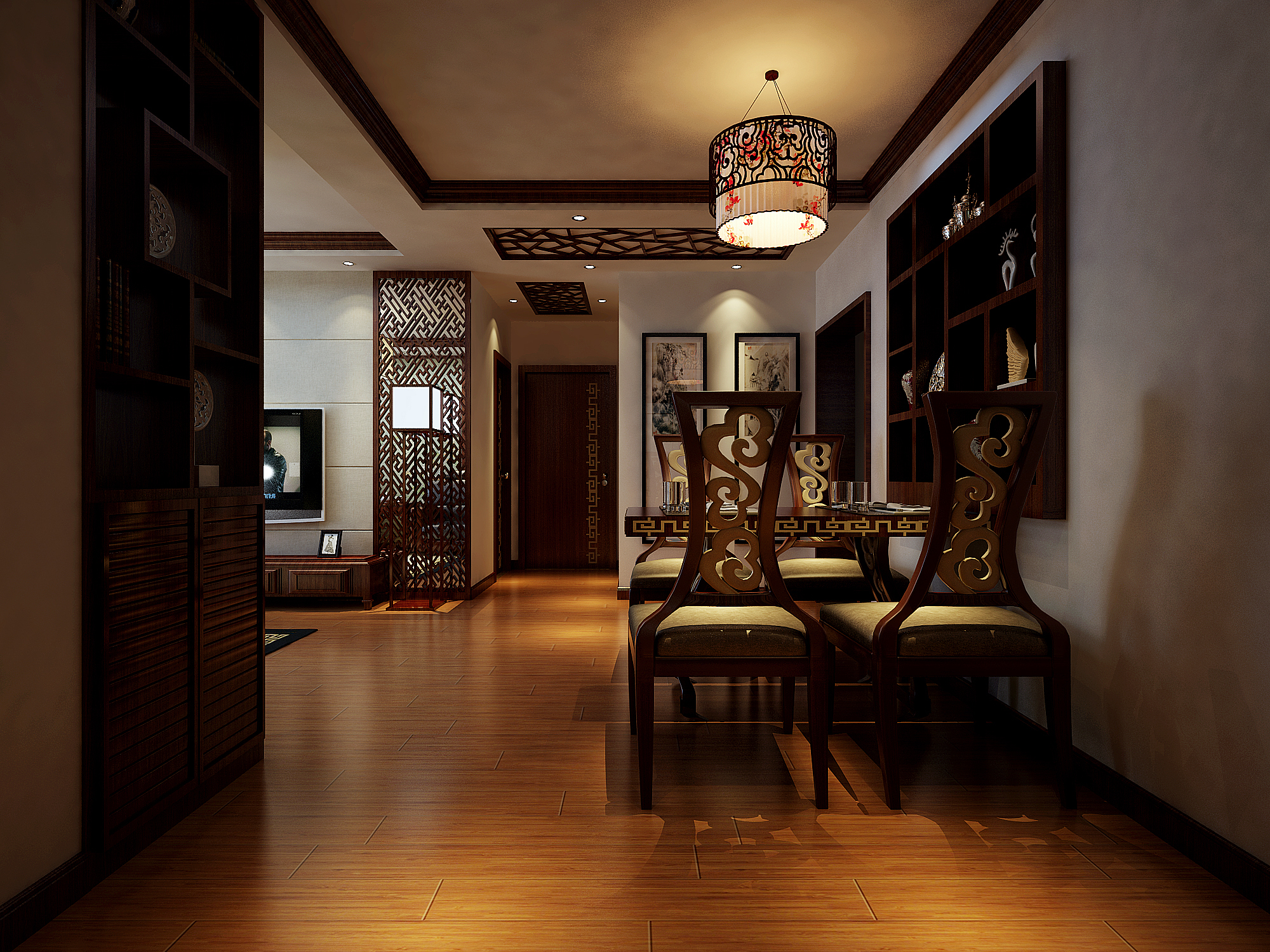小区:铂金公馆 面积:128㎡ 户型:三居 风格:新中式风格