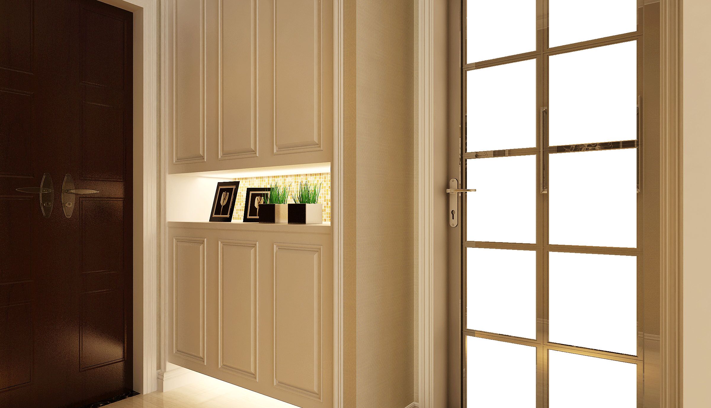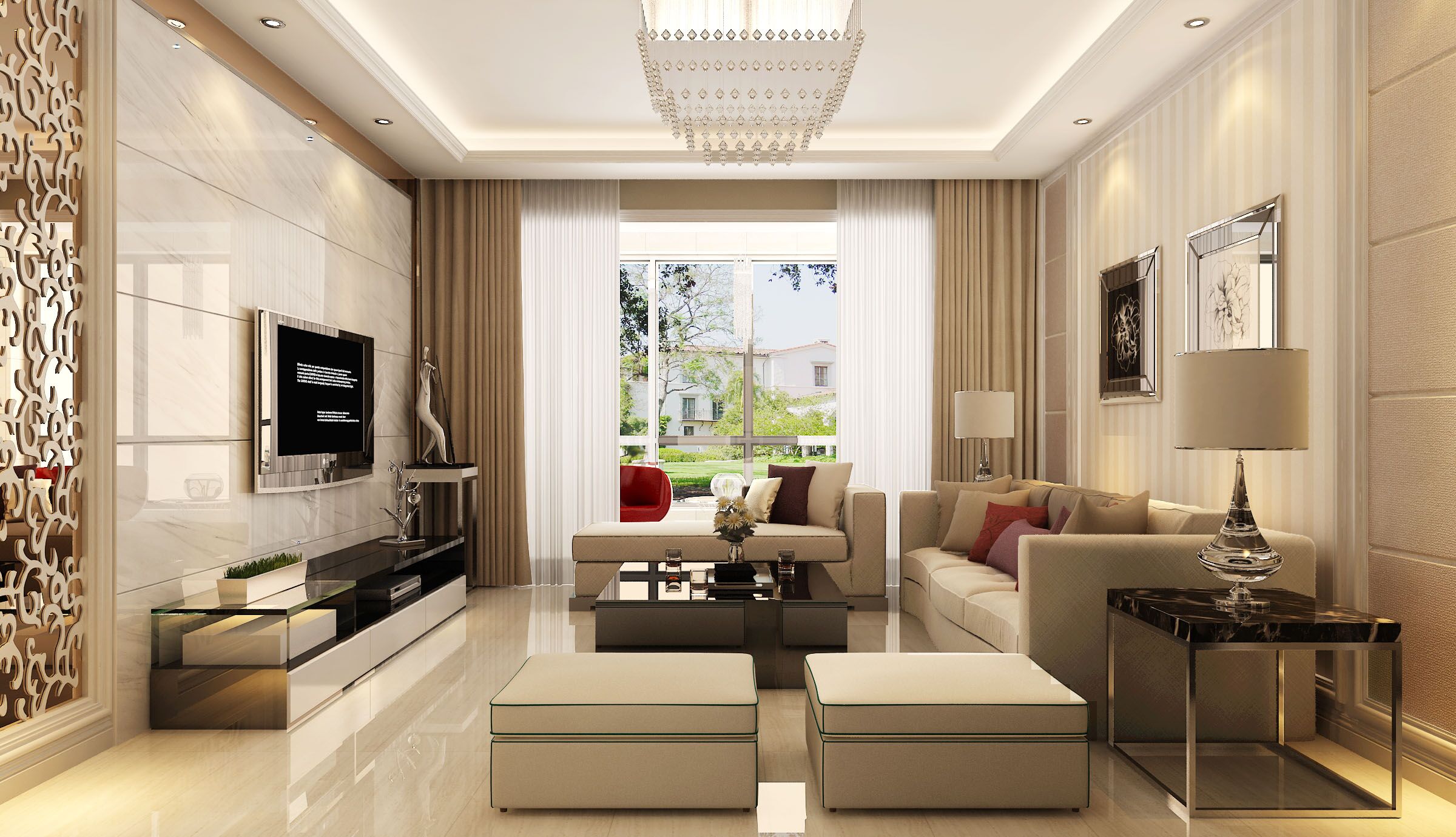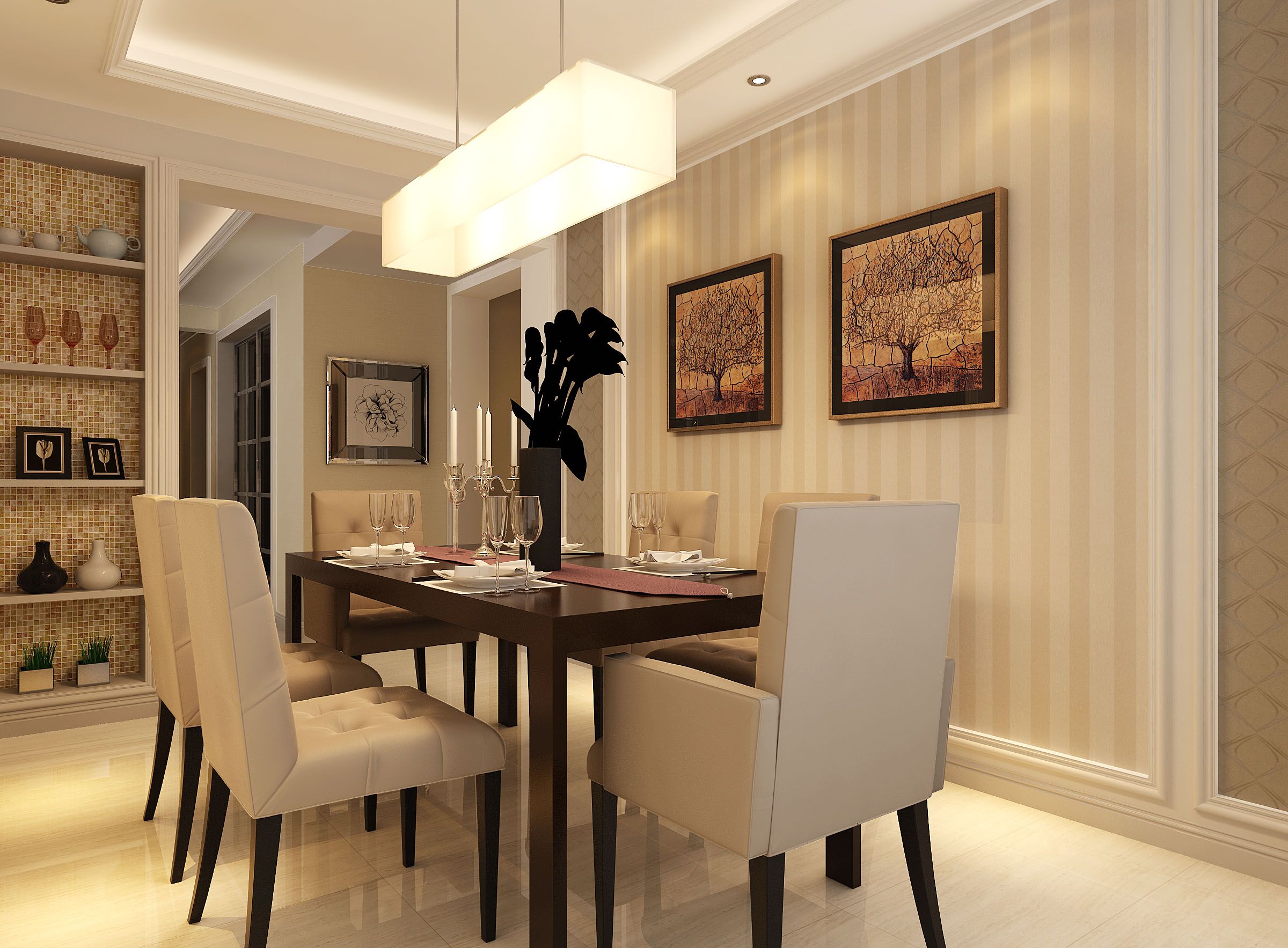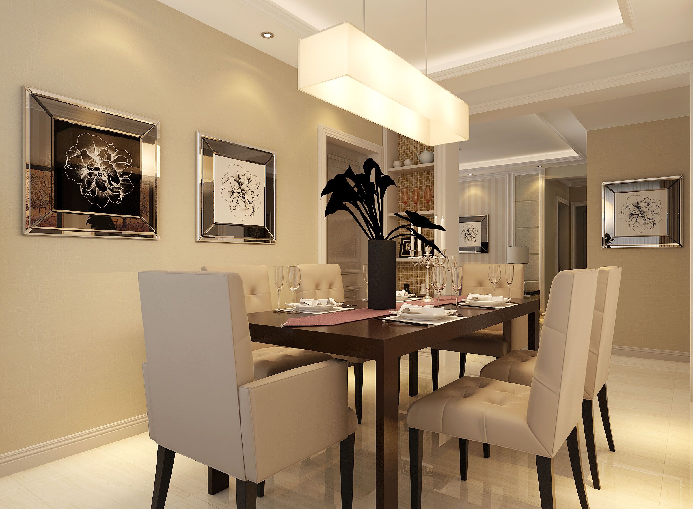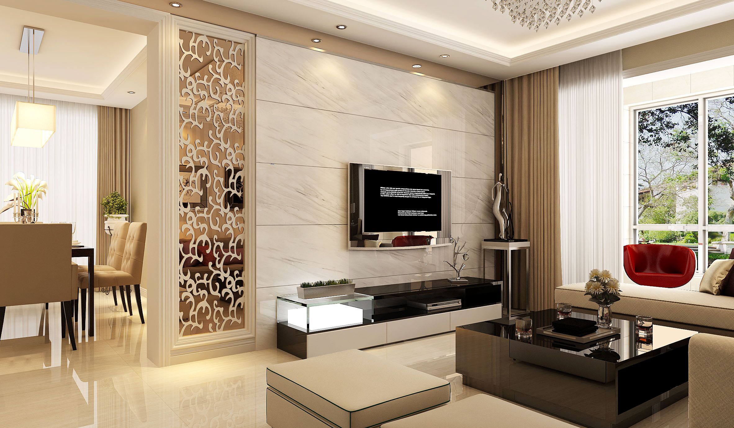 室内空间开敞、内外通透,在空间平面设计中追求不受承重墙限制的自由,室内墙面、地面、顶棚以及家具陈设乃至灯具器皿等均以简洁的造型、纯洁的质地、精细的工艺为其特征。