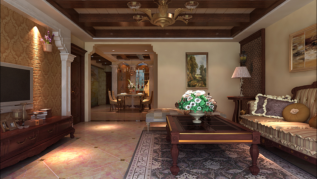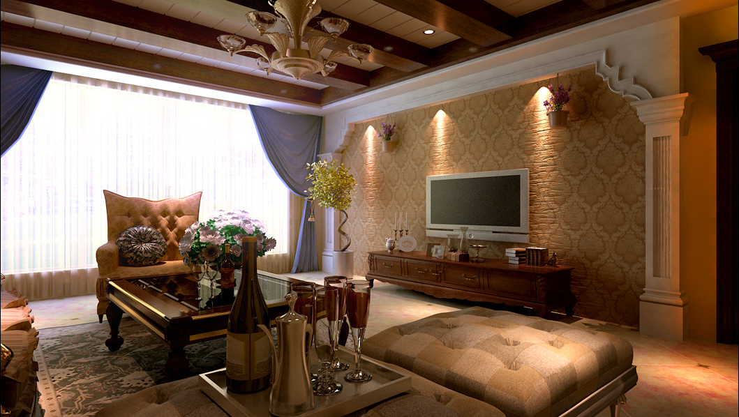配饰上,茂盛的花卉,典雅的烛台,充分衬托出一种尊贵和品位。